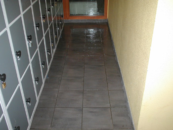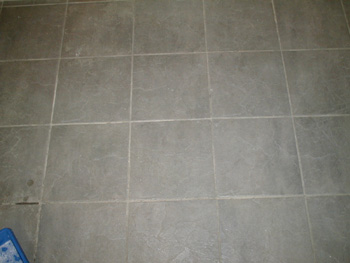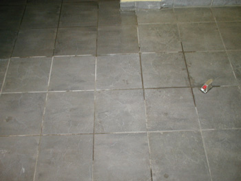Myndir af týpískum keramic flísum fyrir og eftir hreinsun og meðhöndlun, flestar þessar flísar eru með mjög lágum rakastuðli eða innan við 3% sem gerir það erfitt að filma þær með hverskonar efnum, þetta gildir samt ekki um fúgubilið á milli þeirra sem yfirleitt er fyllt upp með sementsblöndu, þessar flísar eru viðhaldsfríar upp að því marki að þær þarf að þrífa reglulega, en sumum gengur illa að hreinsa þær þar sem þvegið er með þvegli, þá er það ráð að metta þær með allt öðru en tjöru og drullu, við höfum notað silicone grunnvara til að loka þessum flísum og fúgunni, svona aðgerð auðveldar þrif þar sem þrifið er með þvegli. Það sem við getum gert fyrir þig er að hreinsa þær upp ef þú lendir í svona vandræðum og einnig getum við lokað flísunum og fúgunni þannig að þetta fyllist ekki af skít.